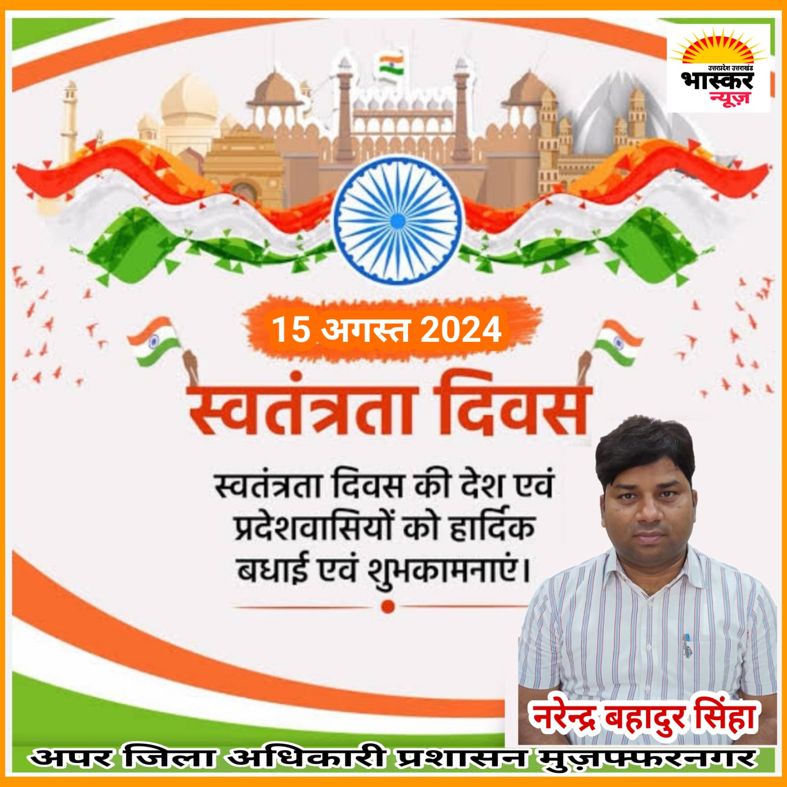 नरेन्द्र बहादुर सिंहा अपर जिला अधिकारी प्रशासन मुज़फ्फरनगर की ओर से स्वतंत्रता दिवस की शुभकामनाएं। August 14, 2024 No Comments Read More »