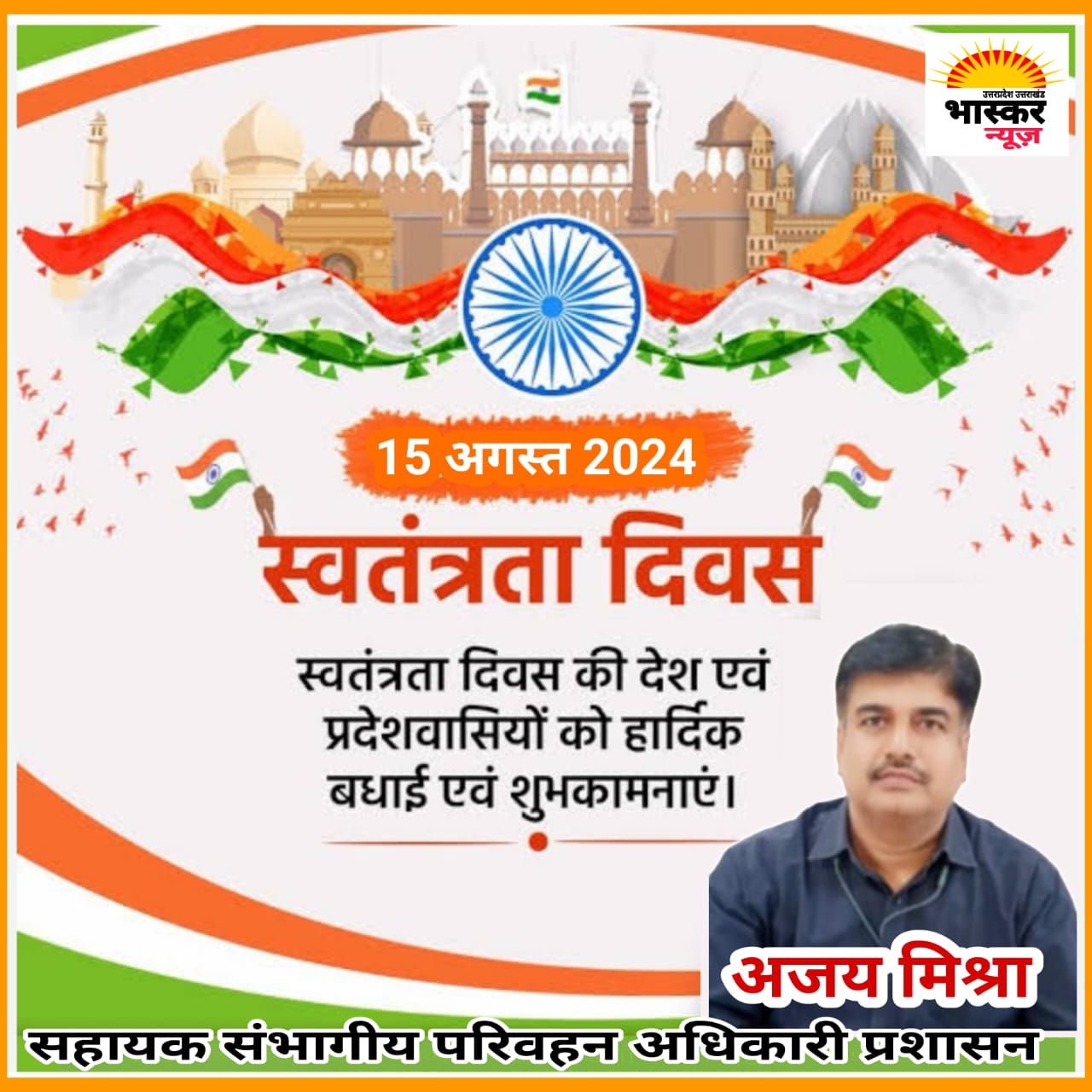 अजय मिश्रा सहायक संभागीय परिवहन अधिकारी प्रशासन मुज़फ्फरनगर की ओर से स्वतंत्रता दिवस की शुभकामनाएं। August 14, 2024 No Comments Read More »