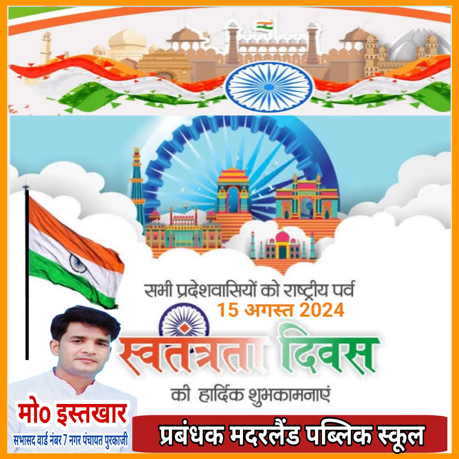 मो० इस्तखार सभासद वार्ड नंबर नगर पंचायत पुरकाजी की ओर से स्वतंत्रता दिवस की शुभकामनाएं। August 14, 2024 No Comments Read More »