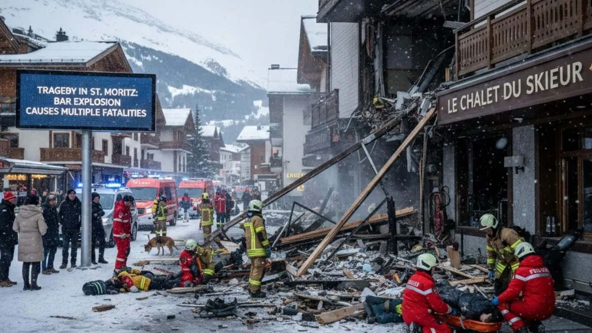 एक तरफ जहां पूरी दुनिया नए साल का जश्न मना रही है. वहीं दूसरी तरफ स्विट्जरलैंड से विस्फोट की बड़ी खबर सामने आ रही है. स्विट्जरलैंड के क्रांस मोंटाना शहर में गुरुवार तड़के सुबह एक धमाका हुआ. इस धमाके में कई लोगों के मारे जाने की खबर है. इसके साथ ही कई लोग घायल भी हुए हैं.साथ कई एंबुलेंस भी मौजूद हैं. विस्फोट किस वजह से हुआ, यह अभी साफ नहीं है.घायलों को अस्पताल में भर्ती कराया जा रहा है. पुलिस ने सुरक्षा कारणों के कारण पूरे इलाके को घेर लिया है. शुरुआती जानकारी के अनुसार इस धमाके में कई लोग मारे गए हैं. हालांकि अब तक मौत का कोई सही आंकड़ा सामने नहीं आ सका है.धमाके के तुरंत बाद ही मौके पर पुलिस और इमरजेंसी टीमें मौजूद हैं. फिलहाल राहत और बचाव कार्य किया जा रहा है. इस धमाके को लेकर पुलिस का कहना कि हम जांच कर हैं. ब्लास्ट में घायल हुए लोगों में कुछ की हालत बेहद गंभीर बताई जा रही है. एहतियात के तौर पर विस्फोट वाली जगह और उसके आसपास के इलाके को सील कर दिया गया है.