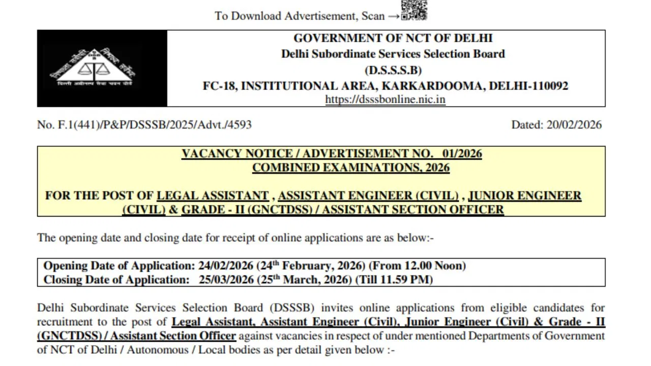 दिल्ली में 911 पदों पर वैकेंसी, इस डेट से आवेदन होंगे शुरू, February 22, 2026 No Comments Read More »