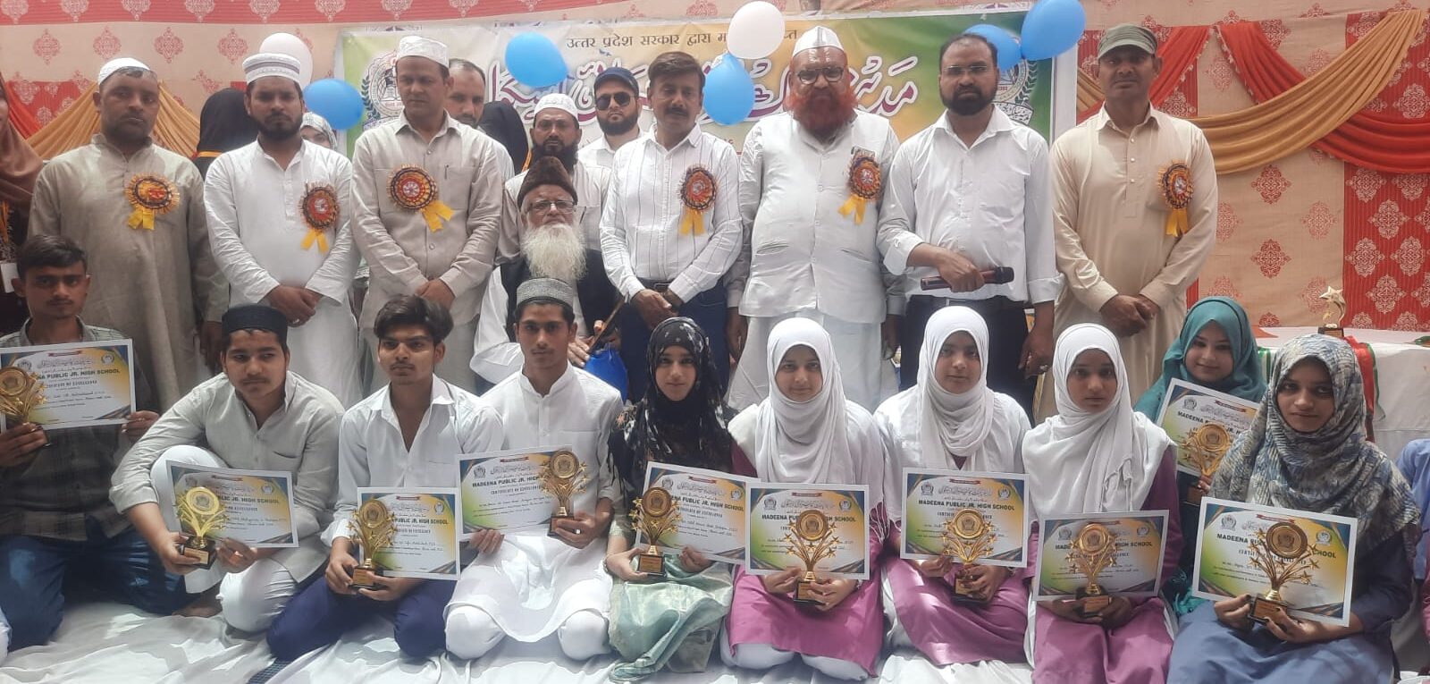 मुज़फ़्फ़रनगर के मदीना पब्लिक जूनियर हाई स्कूल में वार्षिक उत्सव का आयोजन बड़े ही हर्षोल्लास और गरिमामय वातावरण में किया गया। कार्यक्रम की अध्यक्षता यूडीओ के अध्यक्ष कालीन त्यागी ने की, जबकि संचालन विद्यालय के मैनेजर डॉक्टर शमीमुल हसन द्वारा कुशलतापूर्वक किया गया। इस अवसर पर विद्यालय के होनहार छात्र-छात्राओं को उनकी उत्कृष्ट उपलब्धियों के लिए सम्मानित किया गया। कक्षा 1 से लेकर कक्षा 8 तक अपनी-अपनी कक्षाओं में प्रथम स्थान प्राप्त करने वाले सभी विद्यार्थियों को अतिथियों द्वारा मोमेंटो प्रदान कर सम्मानित किया गया, जिससे बच्चों में उत्साह और आत्मविश्वास की भावना देखने को मिली।