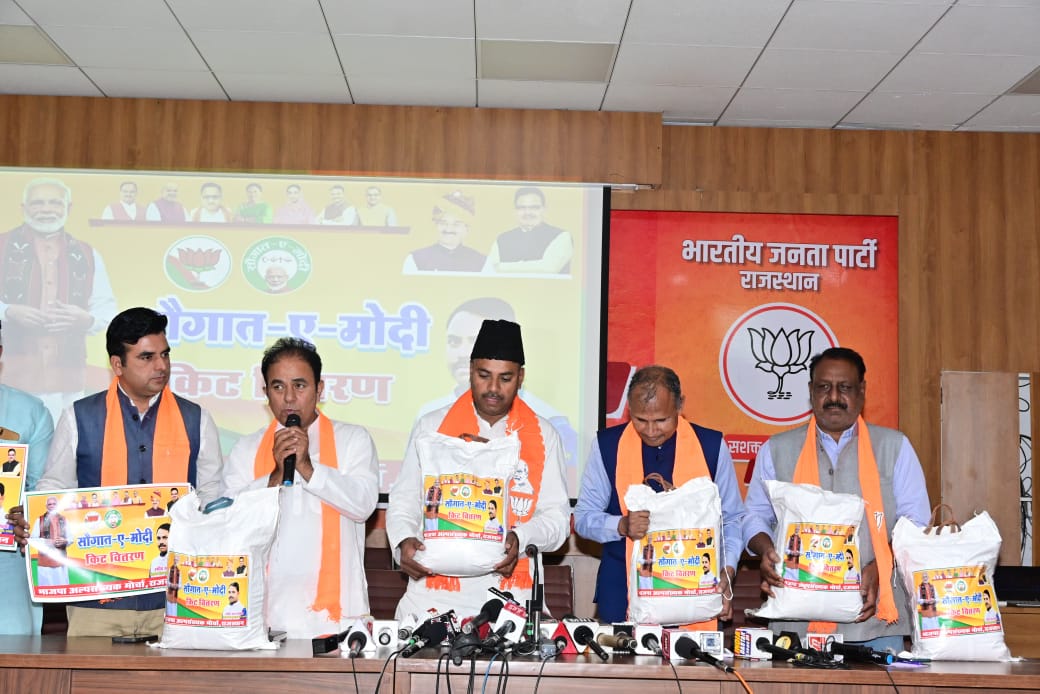 जयपुर। भाजपा अल्पसंख्यक मोर्चा के प्रदेश अध्यक्ष हमीद खान मेवाती ने बताया कि “सौगात-ए-मोदी” किट वितरण कार्यक्रम का शुभारंभ शुक्रवार को सांगानेर विधानसभा क्षेत्र से किया जाएगा। इस अभियान के तहत जरूरतमंद मुस्लिम बहनों को राशन सामग्री वितरित की जाएगी। प्रदेश की सभी 200 विधानसभाओं में करीब 1,00,786 जरूरतमंद बहनों को यह किट उपलब्ध कराई जाएगी।