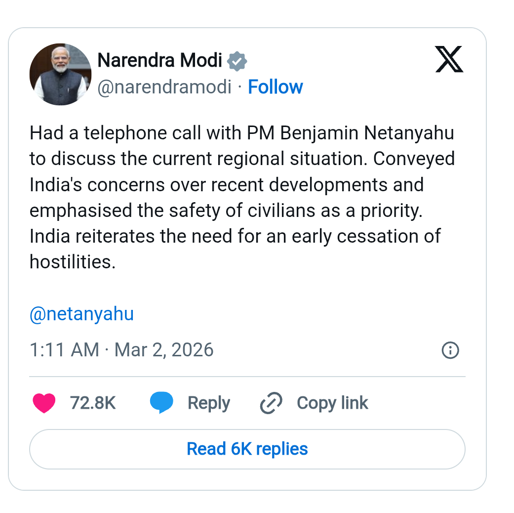 ईरान-इजरायल तनाव के बीच पीएम मोदी ने UAE के राष्ट्रपति और इजराइली प्रधानमंत्री नेतन्याहू को किया फोन,