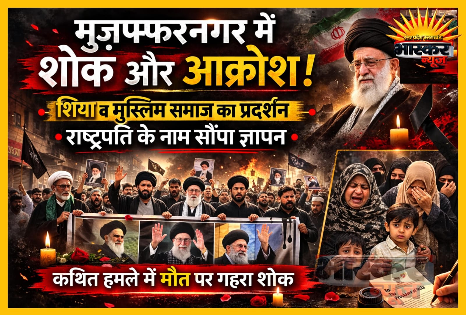 मुजफ्फरनगर में शिया समाज के लोगों ने ईरान के सर्वोच्च नेता Ali Khamenei की कथित हमले में मौत की खबरों को लेकर गहरा शोक और आक्रोश व्यक्त किया है। समाज के प्रतिनिधियों का कहना है कि अमेरिका और इजराइल द्वारा किए गए हमले में उनकी हत्या किए जाने की खबरों से पूरी दुनिया के मुसलमानों और अमन पसंद लोगों में दुख का माहौल है।