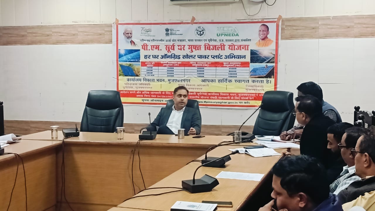 मुजफ्फरनगर में मुख्य विकास अधिकारी संदीप भागिया की अध्यक्षता में विकास भवन सभाकक्ष में पीएम सूर्य घर मुफ्त बिजली योजना के प्रभावी क्रियान्वयन को लेकर मासिक बैठक आयोजित की गई। बैठक में परियोजना प्रभारी ने योजना के बारे में विस्तार से जानकारी दी। जनपद में 50 हजार घरों पर ऑनग्रिड सोलर रूफटॉप पावर प्लांट स्थापित करने का लक्ष्य रखा गया है। इस योजना के तहत 2 किलोवाट संयंत्र की स्थापना पर 90 हजार रुपये और 3 किलोवाट संयंत्र पर 1,08,000 रुपये तक का अनुदान केंद्र व राज्य सरकार द्वारा दिया जाता है। योजना के तहत 1 से 10 किलोवाट तक के घरेलू विद्युत कनेक्शन वाले लाभार्थी इसका लाभ उठा सकते हैं।