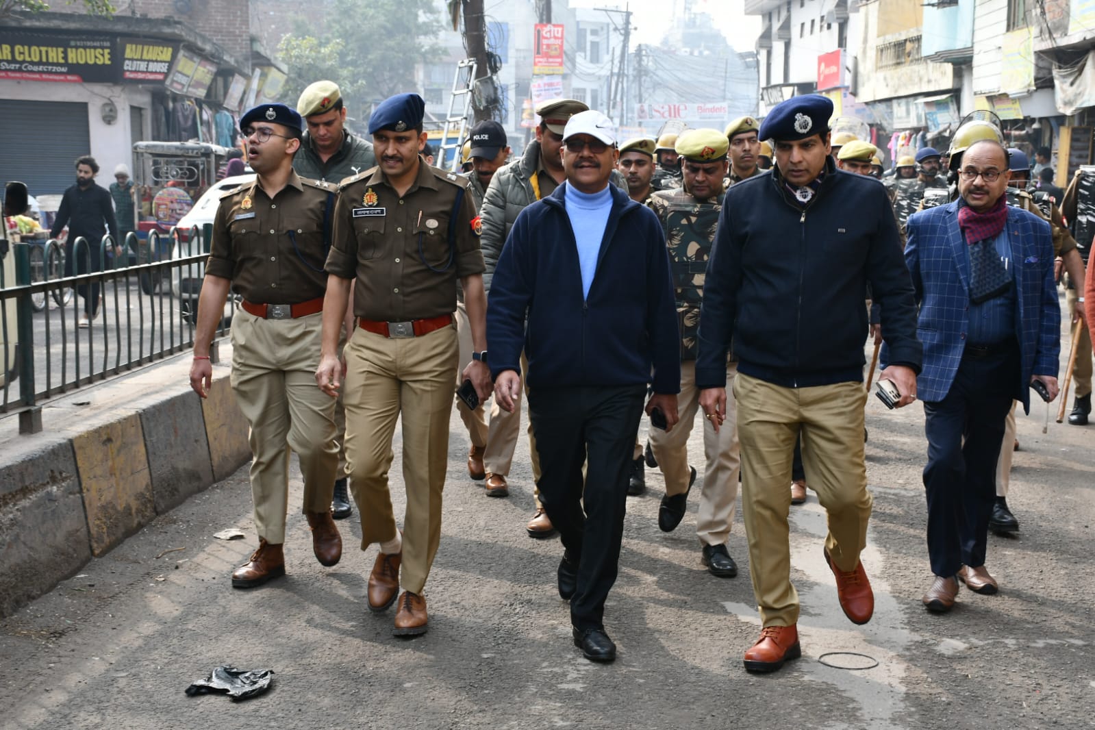 आगामी पर्व व त्योहारों जैसे संत रविदास जयंती, शब-ए-बारात आदि को शांतिपूर्ण ढंग से संपन्न कराने और जनपद मुजफ्फरनगर में कानून एवं शांति व्यवस्था को मजबूत बनाए रखने के उद्देश्य से आज जिलाधिकारी उमेश मिश्रा और वरिष्ठ पुलिस अधीक्षक संजय कुमार वर्मा ने पुलिस एवं प्रशासनिक अधिकारियों के साथ नगर क्षेत्र में व्यापक फ्लैग मार्च किया। यह फ्लैग मार्च थाना खालापार और कोतवाली नगर क्षेत्र के अंतर्गत प्रमुख चौराहों, व्यस्त बाजारों, संवेदनशील स्थानों तथा मिश्रित आबादी वाले इलाकों में पुलिस बल के साथ दंगा नियंत्रण उपकरणों सहित निकाला गया, जिससे आमजन में सुरक्षा का भरोसा कायम किया जा सके। फ्लैग मार्च के दौरान अपर जिलाधिकारी प्रशासन संजय कुमार सिंह, पुलिस अधीक्षक नगर सत्यनारायण प्रजापत, नगर मजिस्ट्रेट पंकज प्रकाश राठौर, सहायक पुलिस अधीक्षक व क्षेत्राधिकारी नगर सिद्धार्थ के. मिश्रा, थाना प्रभारी कोतवाली नगर बबलू कुमार, थाना प्रभारी खालापार महावीर सिंह सहित पुलिस और प्रशासन के अन्य अधिकारी एवं कर्मचारी मौजूद रहे। इस अवसर पर अधिकारियों ने बाजारों और भीड़-भाड़ वाले क्षेत्रों में पैदल भ्रमण कर सुरक्षा व्यवस्था का निरीक्षण किया, स्थानीय दुकानदारों और नागरिकों से संवाद किया तथा त्योहारों के दौरान शांति बनाए रखने की अपील की।